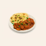 Marinerad, tillagad me kokos, mandel, cashewnöt och kryddor I indisk gräddsås