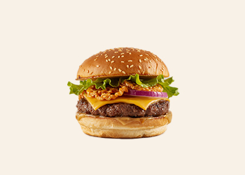 Nötkött 110 gm, cheddarost,rödlök, tomat, krispsallad, original dressing