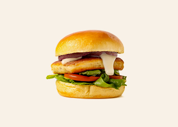 Grilloumi 75 gm, cheddarost, rödlök, tomat, krispsallad, original dressing.